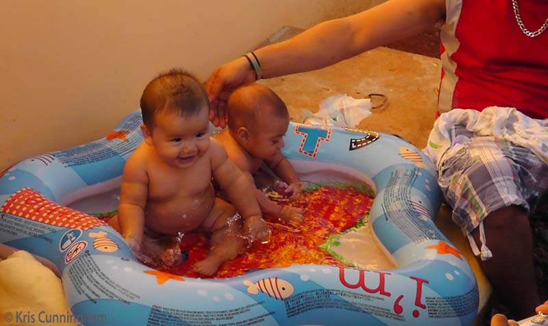 Later a baby pool was brought out and the babies had a great time playing in the water. Yaira’s baby is the one in back with his dad’s arm protectively nearby.