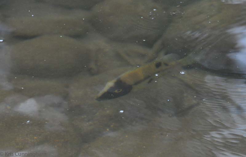 This odd little fish was swimming near the river bank. It’s face was black on one side and white on the other.