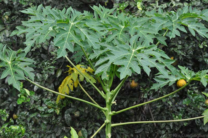 It all started with the wonderful papayas I love. I tossed the seeds and peels in the yard for the birds and iguanas. Later, many of the seeds sprouted. This is the biggest plant.