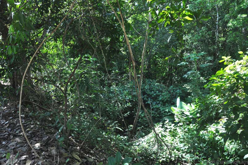 Next to the road is a deep gully that has probably been carved out by many years of rain water running down to the river.