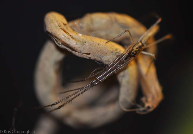 When I left at the end of the evening the spider was hanging out on the underside of this brown tendril. This morning it was nowhere to be seen so it apparently moved on during the night.