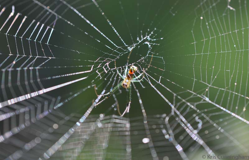While we are on the subject of spiders, this pretty one spun a web in the potted plants.