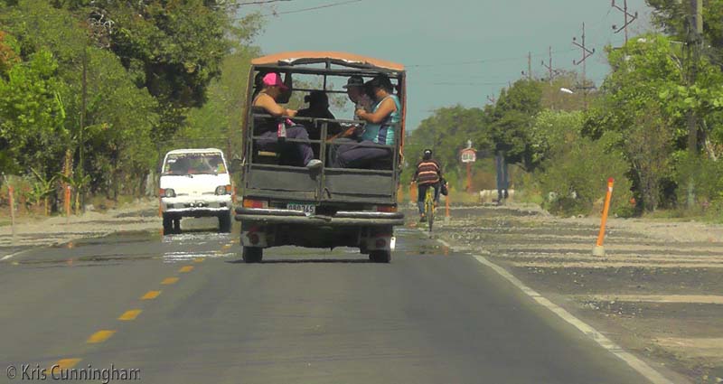 This truck was loaded with people laughing and talking. We also saw a lot of people on bicycles.