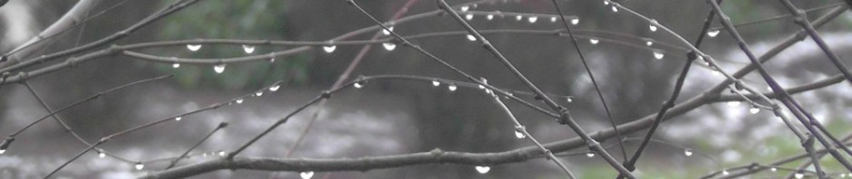 Instead of snow, today there are raindrops on the trees.