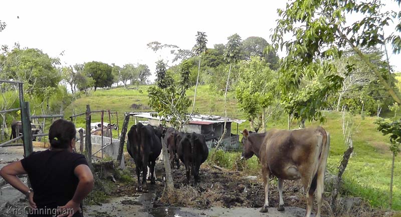Milking is done for the afternoon, so the cows are starting to make their way back to their pasture.