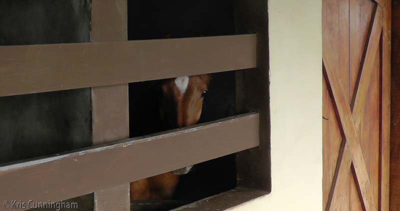 This, however, represents the life of these horses most of the time. They are alone in very nice stalls but probably without much human contact. Many of them shied away from us when we approached.