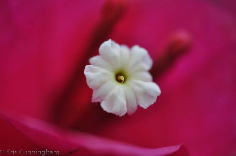 A close view of a tiny white flower.