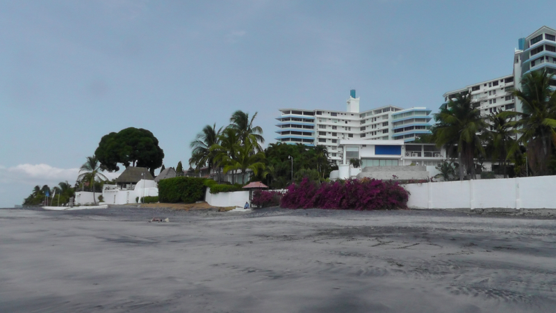 The beach sand is interesting with layers of tan and black.