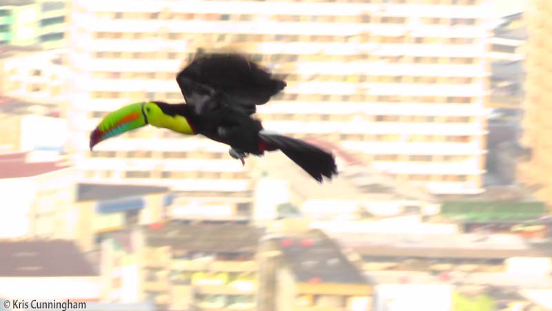 I snapped this just as the toucan took off. It’s not exactly clear but I like it with the city in the background.