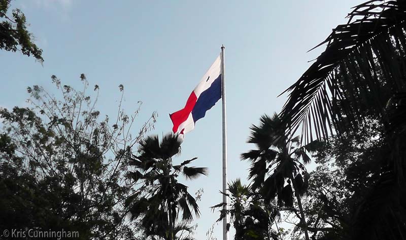 This flag is huge, bigger than a basketball court. The flag is changed twice a year because it takes quite a beating in the wind up there. They cost $800 and are made in New Jersey! (learned that on our canal tour)