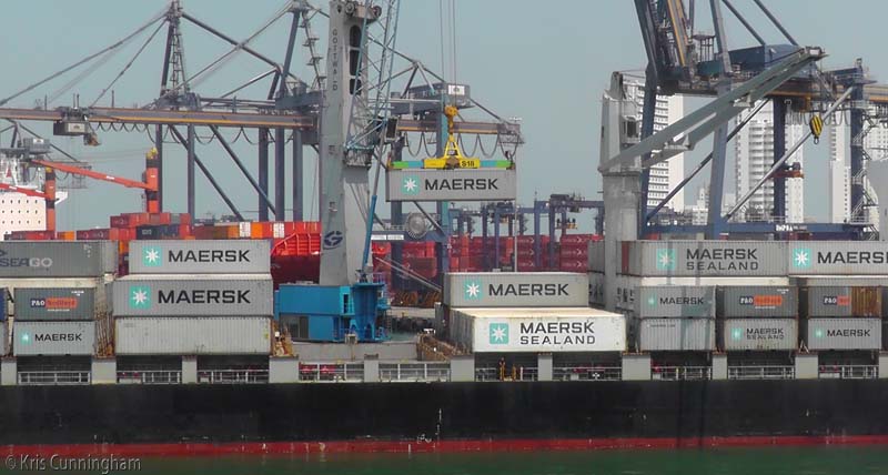 It may be Sunday morning, but the container area is a flurry of activity. The boat next to us is having containers unloaded, and a couple boats farther away were also being unloaded.