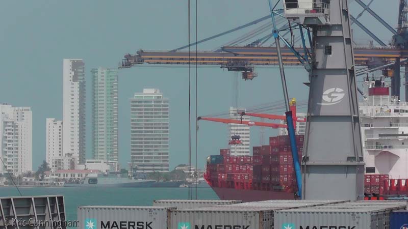 The container port, with the city behind.