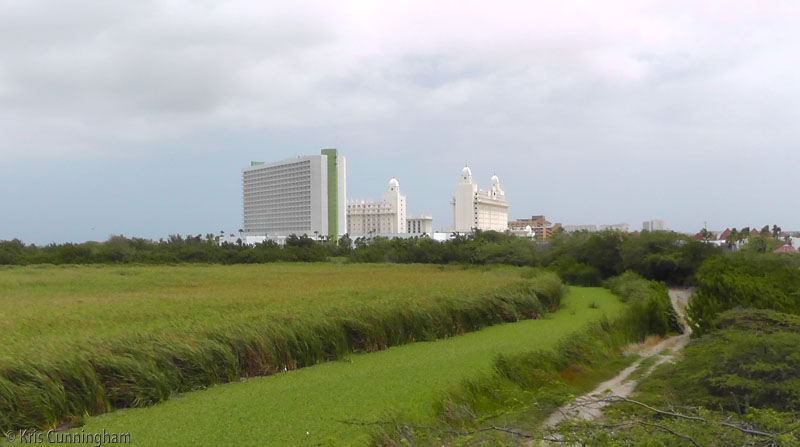 But, in this peaceful and green place, you only have to look up to see the huge resorts not far away.