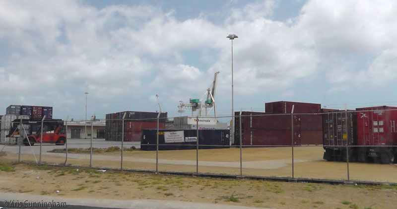 On the way to town we pass the container shipping area. Since everything has to shipped in (except the children and dogs, according to the guide) it makes sense they have these facilities.