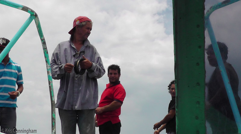 Sitting in the ferry waiting to go back to Golfito, and watching the guys fish. They had line wound around spools or even plastic bottles with hooks on the end and maybe a small silver fish, and they were casting this into the water. We were there well over half out and didn’t see anyone catch anything, but they were having fun.