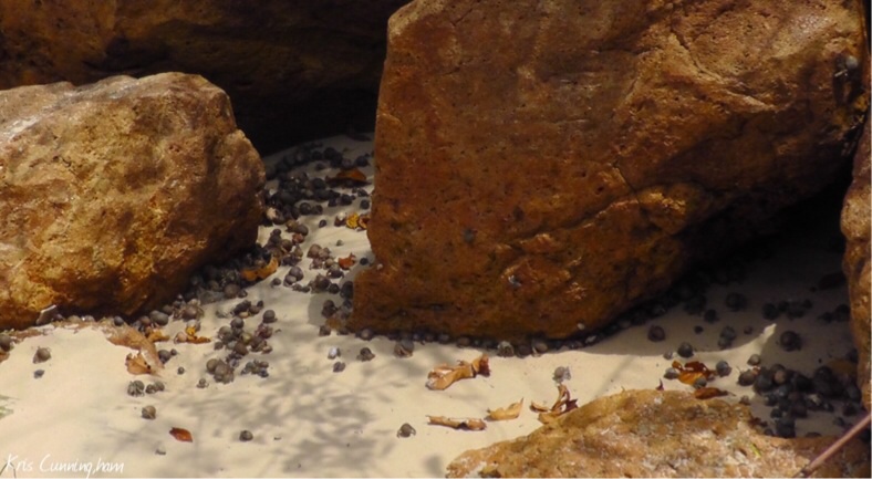 There were hermit crabs everywhere. A lot of them were gathered by these rocks