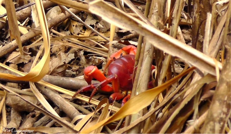 As we were walking to the other side of the island, we spotted this huge red crab in the underbrush.