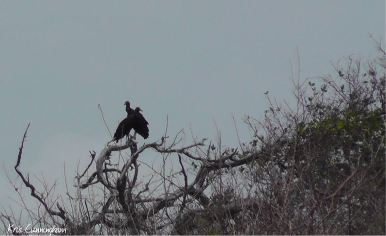 Two vultures roost in a tree