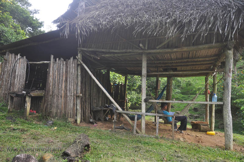View from the side. The window opening is the sink / washing up area. The guy in the hammock was there to do some cutting and trimming, and was apparently waiting for Javier to return and give him instructions.