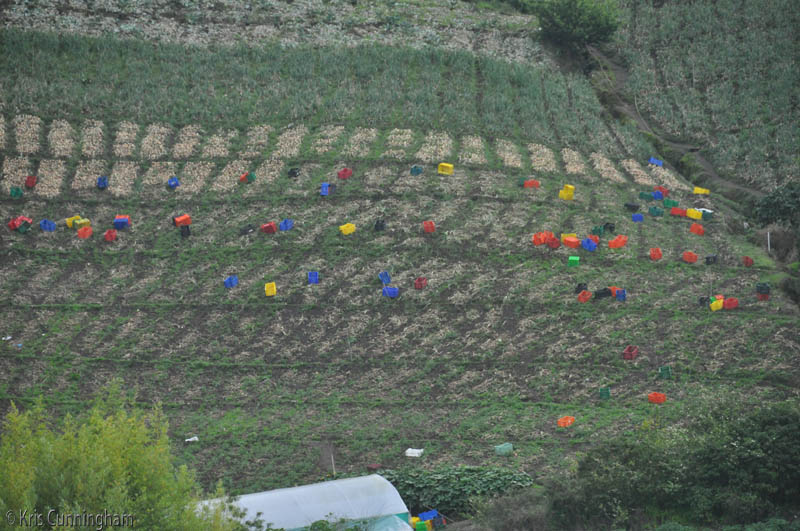 We saw these colors from a distance, and it wasn’t until I downloaded this photo taken with my zoom lens that I realized they were plastic crates. It looks like they had dug potatoes which were laying on the ground waiting to be packed up.