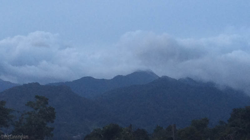 The clouds drift over the mountains as everything turns blue.