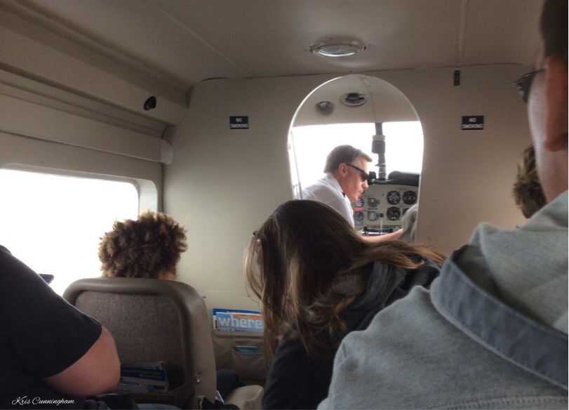 The captain prepares to leave. One of the passengers got to sit in the copilot seat!