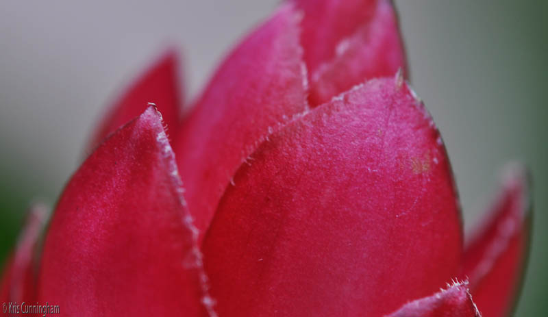 We rescued a lot of ginger plants from the trash, and this one has made the first flowers. The edges of the petals have a hairy texture.