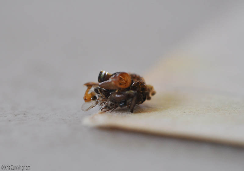 These very strange little bugs collect lint, so you see a little ball of lint walking across your table on tiny little legs. This one though apparently had been collecting bug parts.