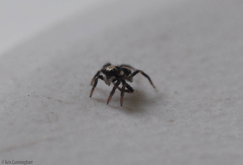 It seemed like this little spider was interested in the ants, but if one came close it would back away.