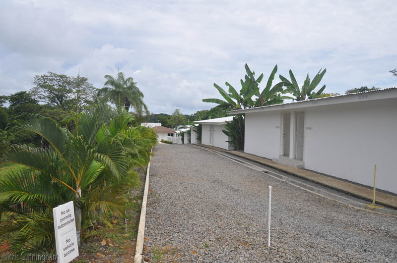 The backs of a row of bungalows. We noticed there are double doors on each one. One leads into a sort of vestibule, and the other into the room.