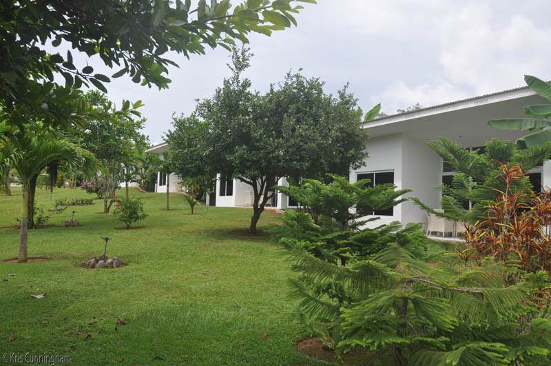 These are the fronts of the bungalows which look out on to the grounds and the water beyond.