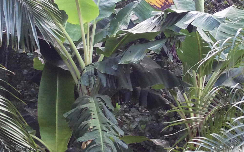Most interesting of all are the banana leaves. They can get badly frayed in the wind but they keep on living and doing what leaved need to do, frayed or not.