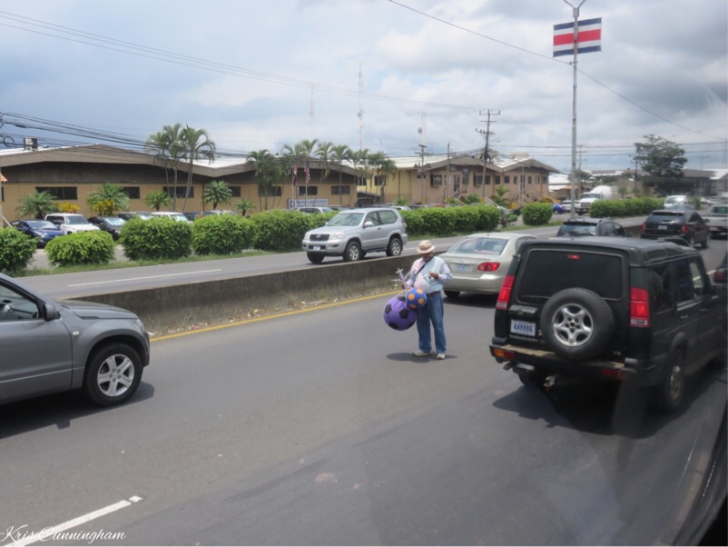 As we left the city, vendors were taking advantage of slow traffic areas. This one was spellings toys and balls