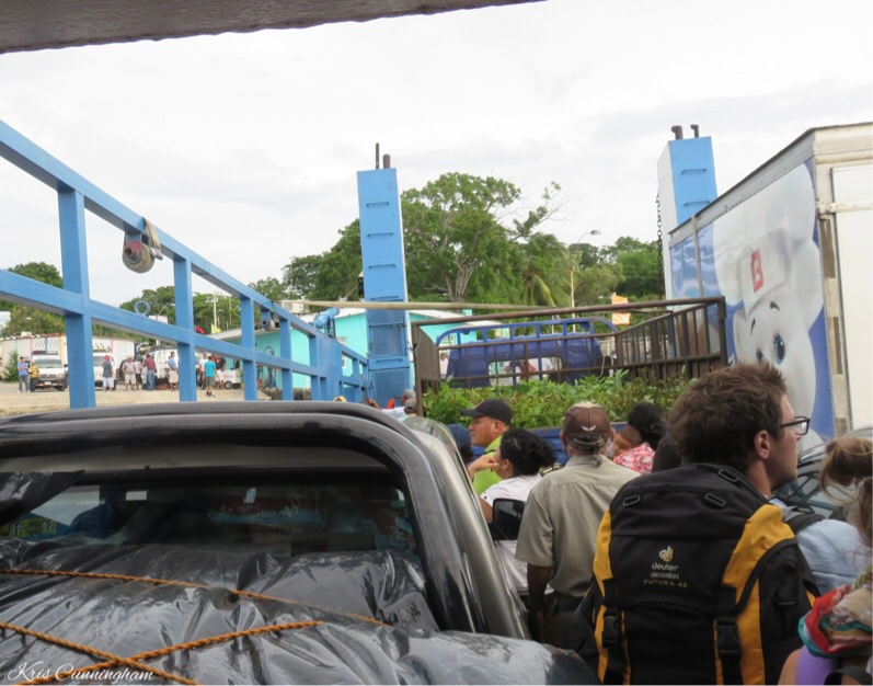 There were vehicles on the ferry too, and bags of animal feed, and a truck full of plants, a truck packed to the rafters, and stuff In every possible corner of the car area.