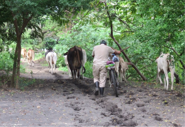 I am learning that it is a very commonplace thing here for someone to be taking his cows from place to place. These were on the road in front of the house.