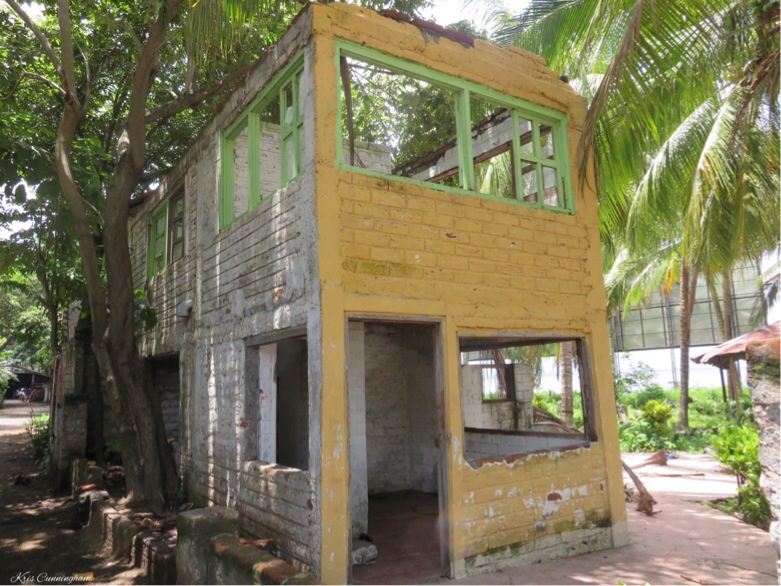 This is the other end of the building. It is long with small rooms along the length. A hotel, maybe?