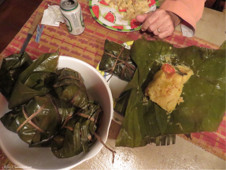 She makes two kinds, one with corn base and pork, the other with rice and chicken. Both are really good!