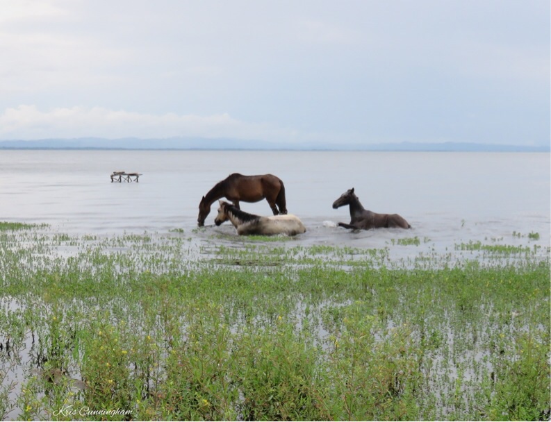 A couple of them decided to roll in the water