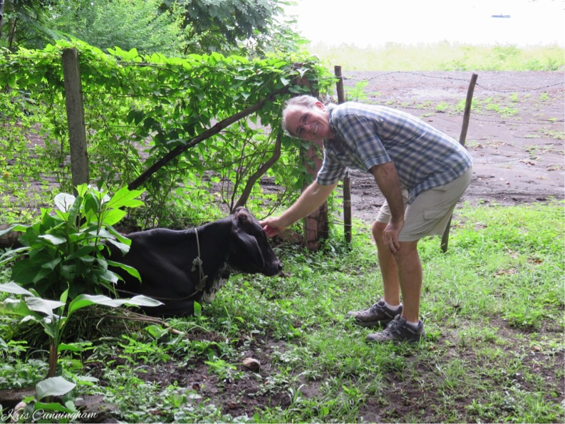 Today the calf is grazing in the yard. When we returned he was napping, but still let Joel give him a few pats and scratches on the head.