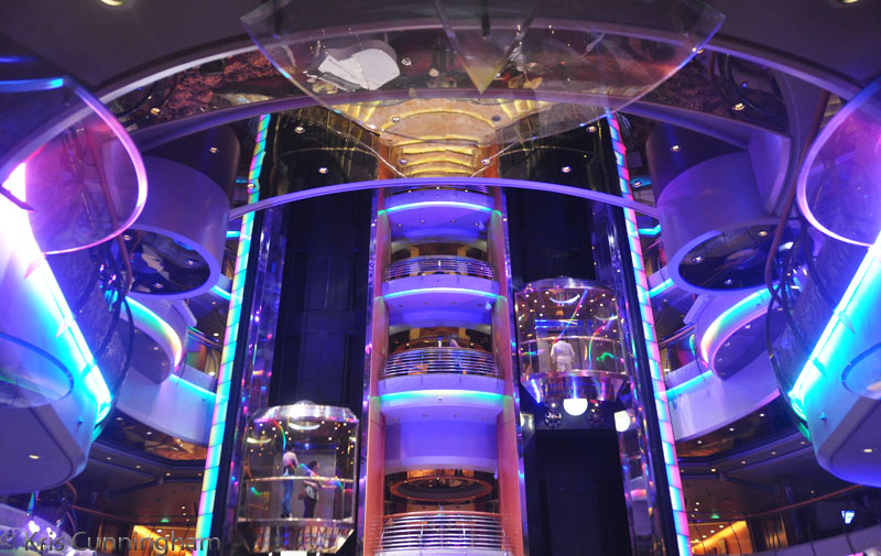 Inside the ship the main area had lots of light, color, and neon at night.