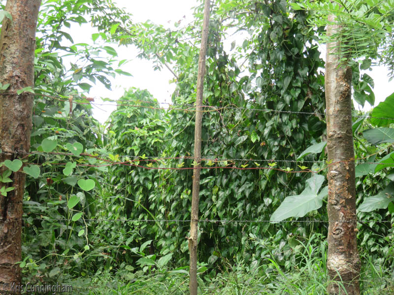 Along here there are a lot more food crops. This is yampi, a type of yam (Dioscorea trifida)