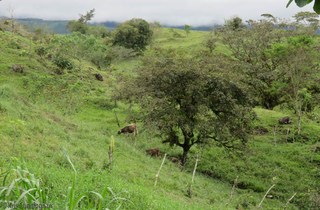 The older calves are grazing down the hill.