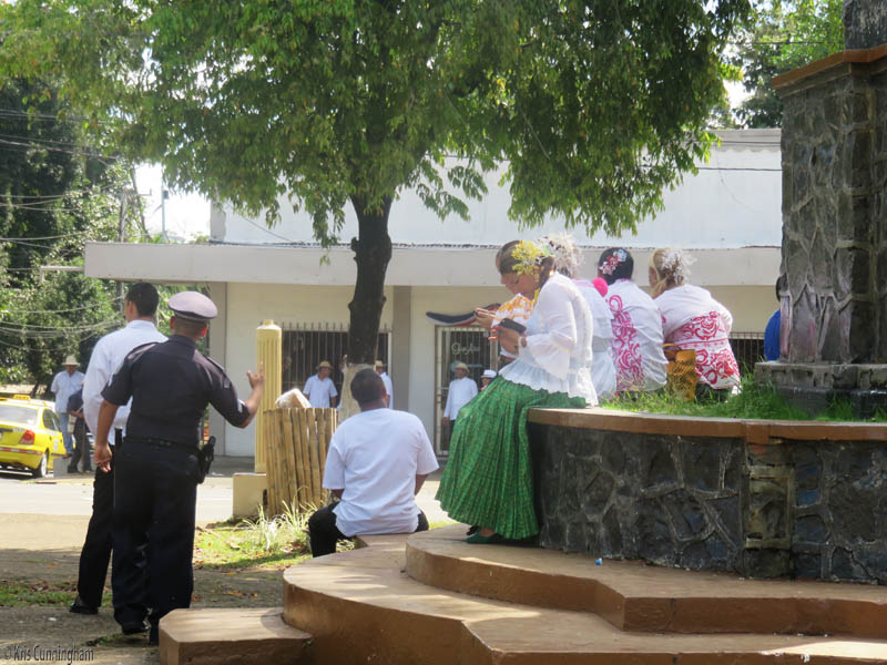 Girls check their iPhones and chat with the policemen while waiting for their turn to start.