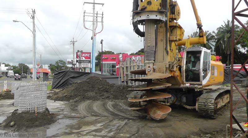 These big diggers started digging holes on either side of the highway, and circular structures of rebar were left sticking up out of the ground.