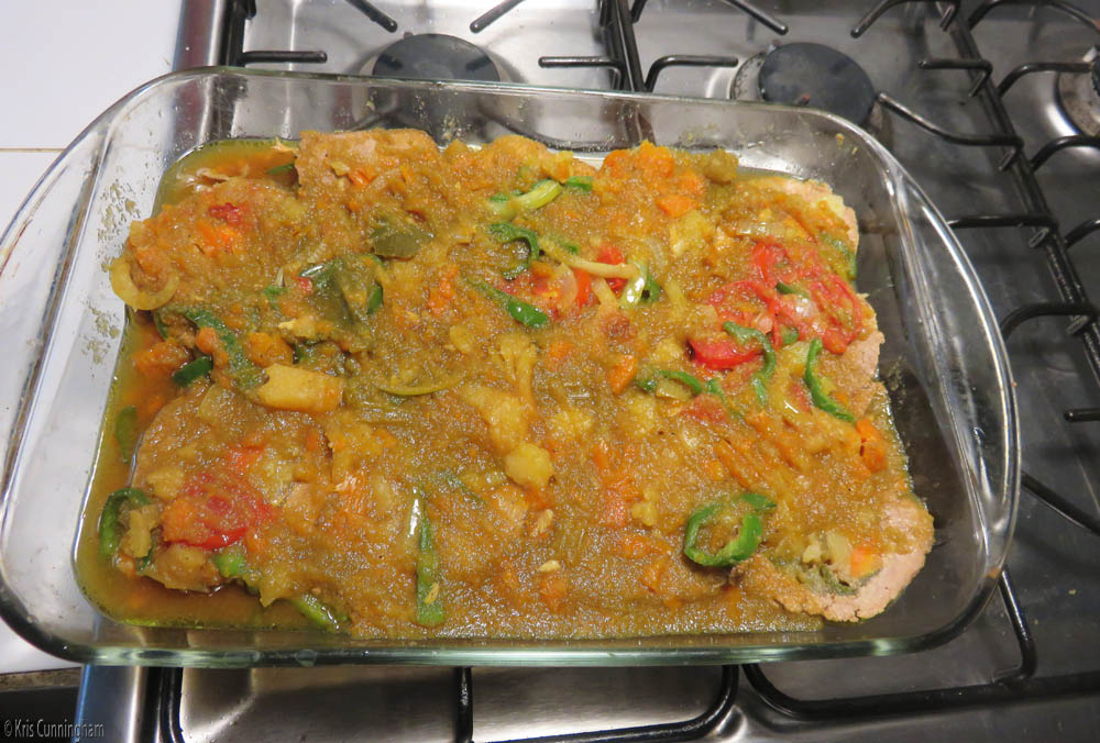 Top with the sauce. It might have looked prettier if I had strained the sauce, but it sure tasted good!