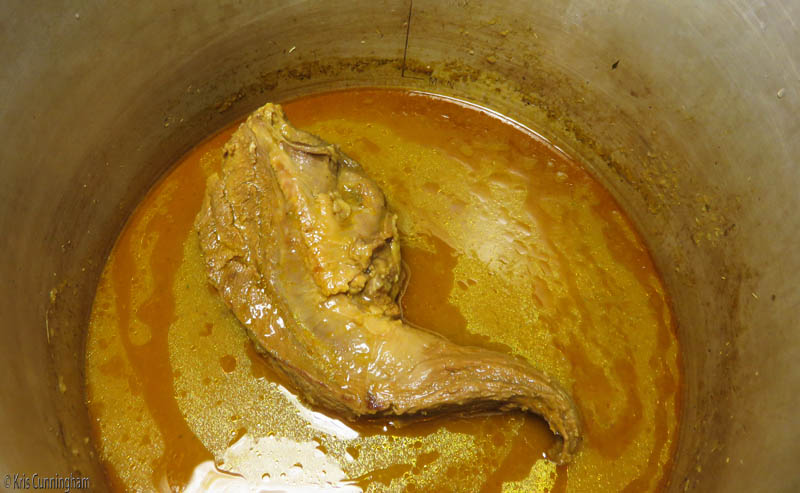 Finally, soft enough to shred a bit with a fork, and it smells really good!