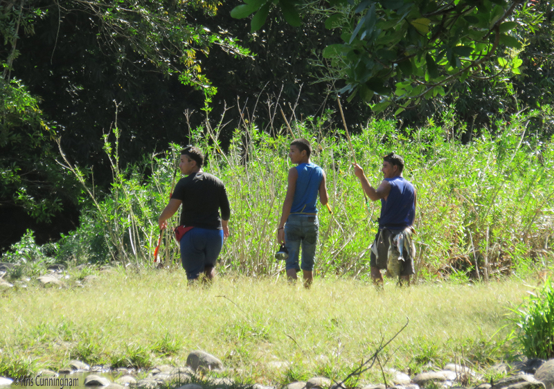 These three boys came walking by with diving masks on, and then I noticed the poles in their hands. Look closely at the one on the right. He has a bunch of fish, some of them quite large, hanging from his belt! I think they must be out spear fishing.