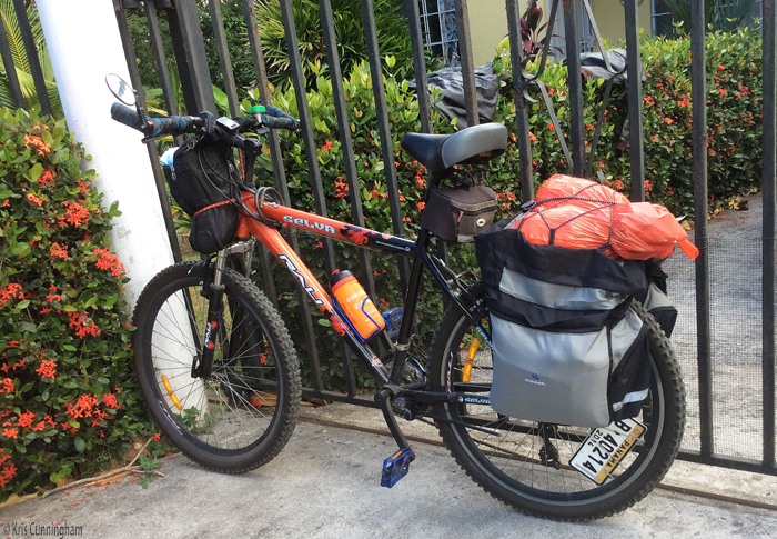 Home from the mercadido loaded with fruit and veggies. There are three pineapples in the red bag on top.