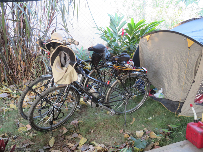 The bikes sit in front of their “home” while they are here. They have spent so many nights in their tent that it does indeed feel like home to them, and they said they slept wonderfully.