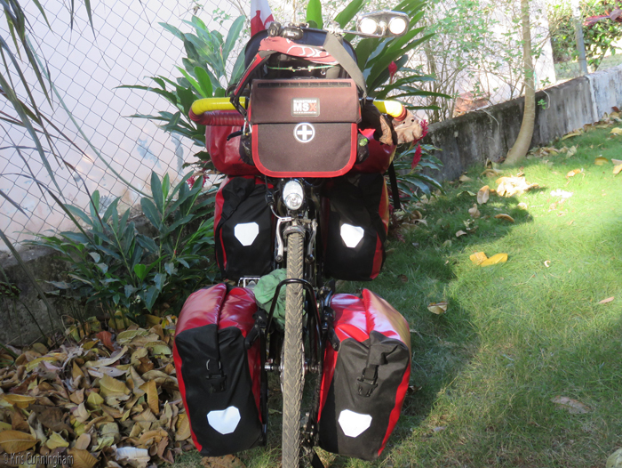He is packed and ready to go again, except the for guitar which gets strapped behind the seat.